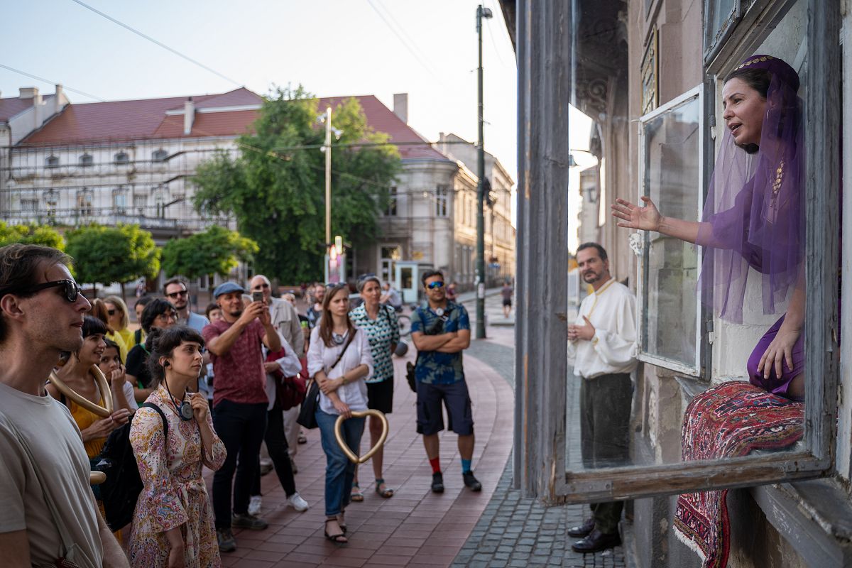 The performance guided residents and visitors through Timisoara’s rich and diverse history, highlighting unknown yet fascinating personalities who shaped the city. Through this site-specific, dramatized city tour, we illuminated significant, often overlooked, moments in Timisoara’s past. The goal was to reconnect the people of Timisoara with the city’s remarkable history, one that is full of contrasts and intricately tied to the wider story of Europe. As the European Capital of Culture in 2023, Timisoara once again shined as a cultural beacon, representing centuries of history, migration, and artistic evolution.